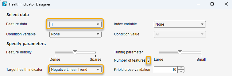 The Health Indicator Designer app allows you to fuse a set of features into a single health indicator (HI) that represents the state of health for the overall system. You can use this single indicator to simplify condition monitoring and RUL predictions in RUL applications.