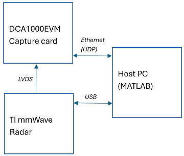 The following image shows a simple connection diagram between host PC, DCA1000EVM and TI mmWave radar.