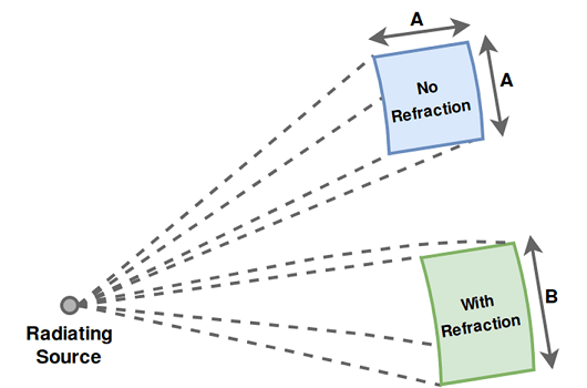 Another source of losses due to atmosphere is from atmospheric lensing. This is a phenomenon whereby the angular extent of a transmission is increased with range due to a refractivity gradient. This spreading of energy decreases the energy density along the nominal (straight) propagation path, independent of frequency.
