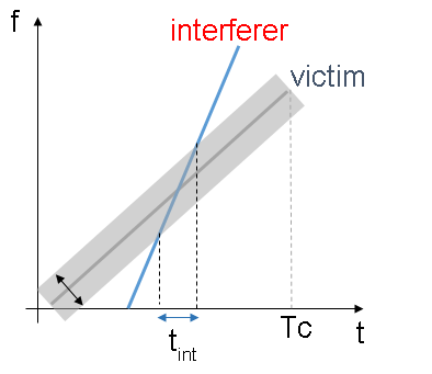 Consider an interfering radar using FMCW modulation. The frequency spectrum characteristics of the interference in the victim radar depend on the chirp's relative timing and slopes.
