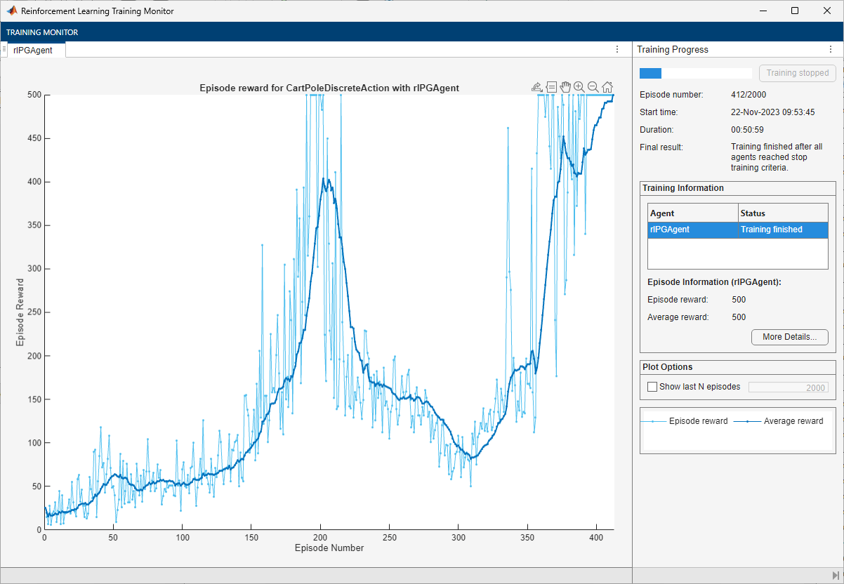 trainOptsis met, terminate training. Otherwise, begin the next episode.