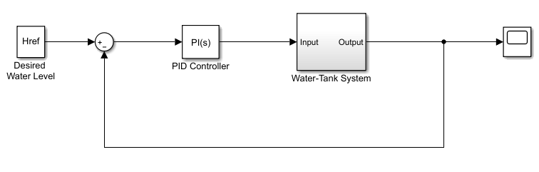 The original model for this example is the water tank model. The goal is to control the level of the water in the tank. For more information about the water tank model, see watertank Simulink Model (Simulink Control Design).