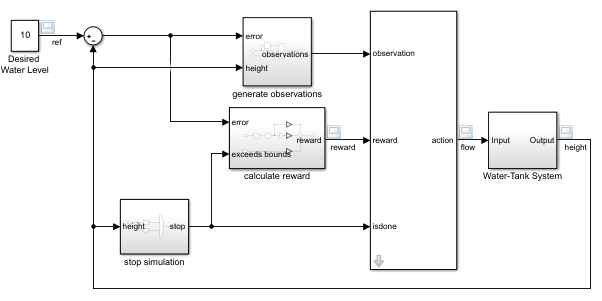 The resulting model is rlwatertank.slx. For more information on this model and the changes, see Create Custom Simulink Environments.