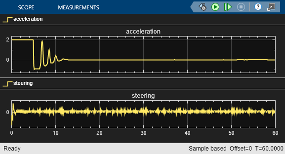 The environment for this example includes a simple bicycle model for the ego car and a simple longitudinal model for the lead car. The training goal is to make the ego car travel at a set velocity while maintaining a safe distance from lead car by controlling longitudinal acceleration and braking, while also keeping the ego car travelling along the centerline of its lane by controlling the front steering angle.
