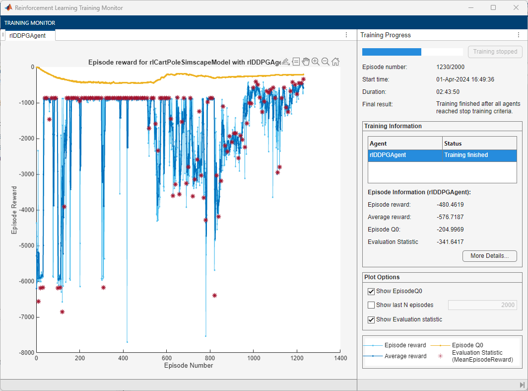 trainingStats = train(agent,env,trainingOptions,Evaluator=evl);