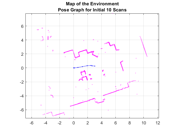 title({'Map of the Environment','Pose Graph for Initial 10 Scans'});