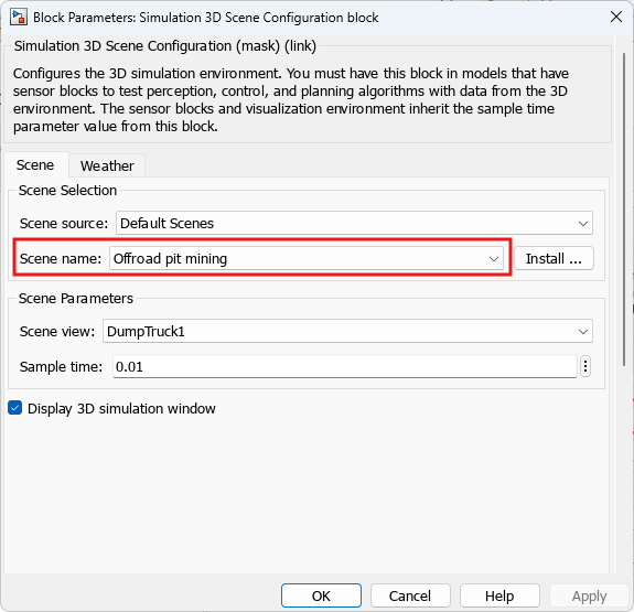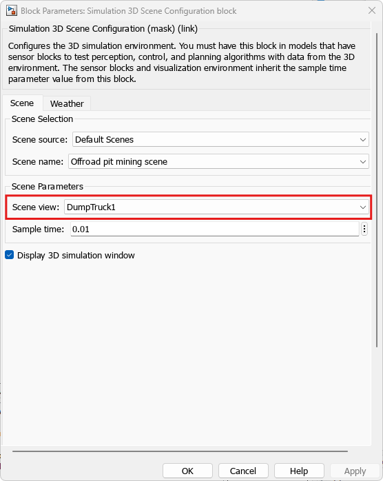 Add a Simulation 3D Scene Configuration block to your Simulink® model.