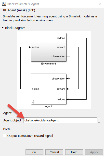 env.UseFastRestart = "Off";For another example that sets up a Simulink® environment for training, see Control Water Level in a Tank Using a DDPG Agent (Reinforcement Learning Toolbox).