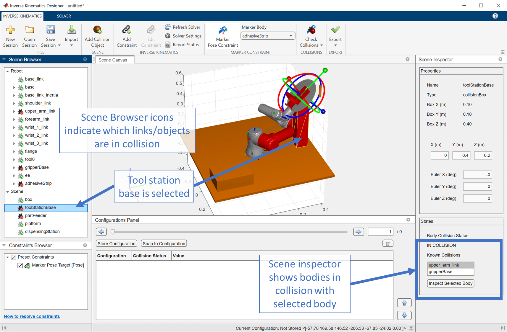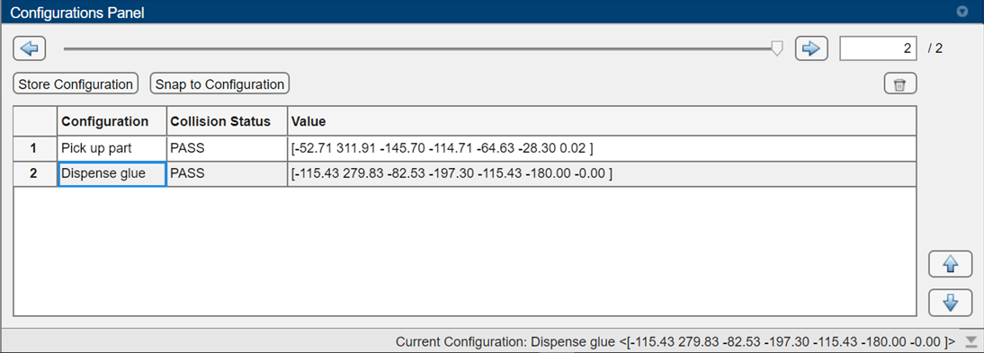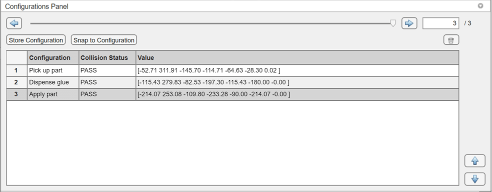 After verifying that the last configuration is collision-free, save it to the Configurations Browser.