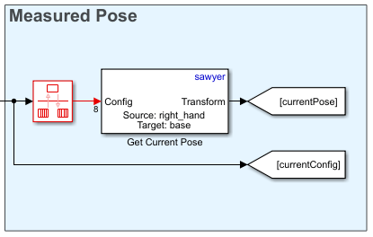 The model outputs two datasets that can be used for visualization after simulation. The joint configurations are provided as jointData. The robot end-effector poses are output as poseData.