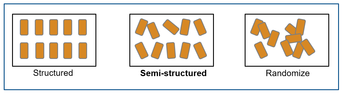 This example focuses on semi-structured bin picking. This diagram shows the classification of bin picking operations based on complexity.
