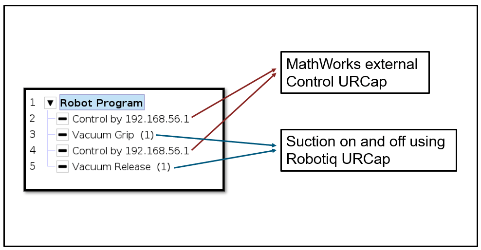 In most real-world cobot applications, operations such as picking and placing, dispensing, and so on, require attaching and using an external end-effector tool customized to the specific application. The ROS drivers from the Universal Robots offer a hand-back control ROS service, which you can use to gain control back from the external control program node. In this example, a helper function is created using this ROS service that you can use in the UR program node execution to run gripper operations along with motion planning.