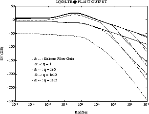 Similarly for the 'dual' problem of filter loop recovery case, [K,SVL,W1] = ltrsyn(G,F,Q,R,RHO,'OUTPUT') computes a filter loop recovery controller of the same form, but with Kf = F is being the input filter gain matrix and the control gain matrix Kc computed as Kc = lqr(A,B,Q+RHO(i)*C'*C,R).