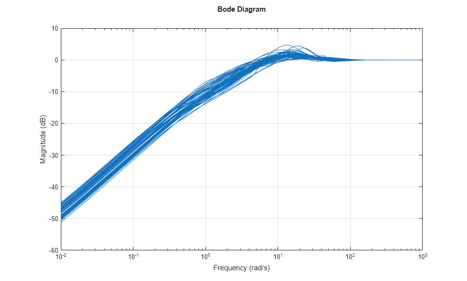 S1 = feedback(1,Parray*K1); % sensitivity to output disturbance bodemag(S1,{1e-2,1e3}) grid on