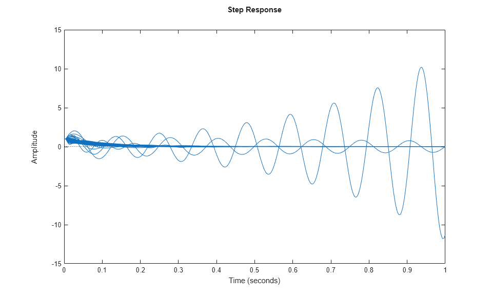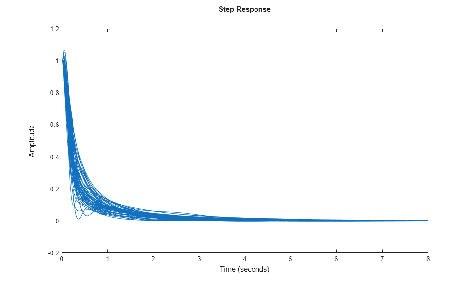 A collection of step responses for randomly sampled uncertainty values illustrates the plant variability.