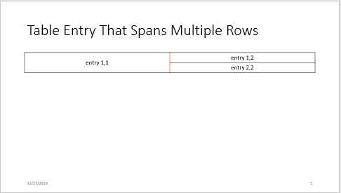 replace(slide,"Title","Table Entry That Spans Multiple Rows"); replace(slide,"Table",t);