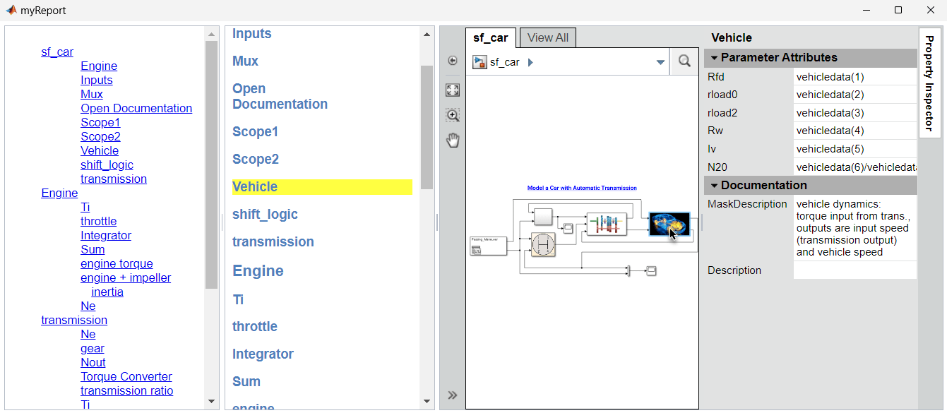 5. In the embedded web view, double-click the Vehicle block. The document pane temporarily highlights the element name.