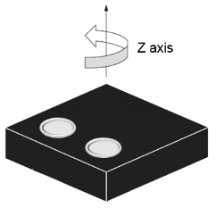 The Gyroscope block measures the angle of rotation (yaw) along the single axis of the gyroscope sensor. In the graphic, the arrow above the vertical axis indicates yaw. The direction of the arrow shows the positive direction of the reading for the gyroscope sensor.