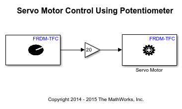 In this example, you will learn how to create a Simulink model that controls a standard servo motor, which is connected to FRDM-TFC Shield.