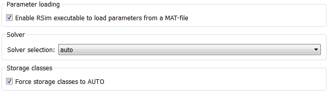 The Code Generation > RSim Target pane includes these parameters when the Simulink®