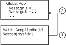 This technique makes it simpler to access embedded definitions. Using the %with construct (as in the previous example), you can refer to the system name simply by