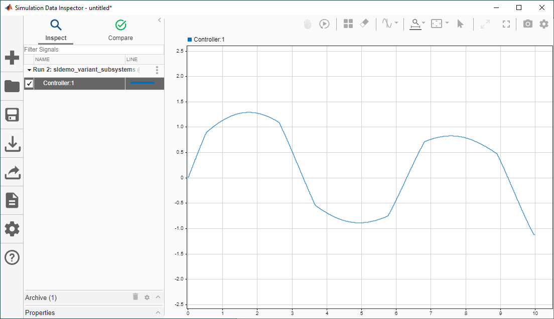 3 Stream data to the Simulation Data Inspector. Run the real-time simulation. Open the Simulation Data Inspector and observe the different results for VSS_MODE == 1 and VSS_MODE == 2.