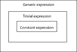 The set of generic expressions is a superset of the set of trivial expressions, and the set of trivial expressions is a superset of the set of constant expressions.