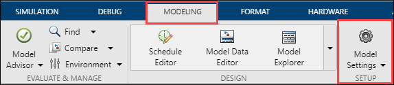 4. Open the Modeling tab and press CTRL+E to open Configuration Parameters dialog box.