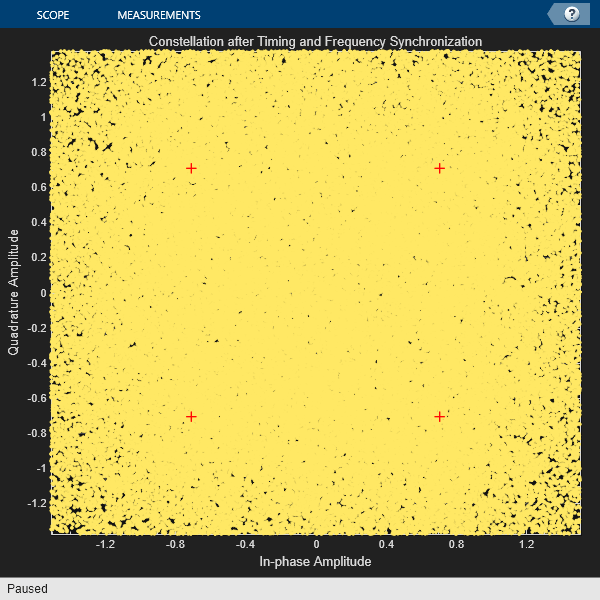 if showVisualizations == true constelDiag = comm.ConstellationDiagram( ... Title = "Constellation after Timing and Frequency Synchronization"); constelDiag.ReferenceConstellation = refConstellation; end