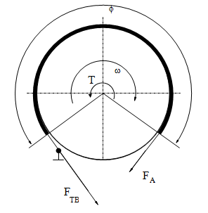The Band Brake block represents a frictional brake with a flexible band that wraps around the periphery of a rotating drum to produce a braking action. A positive actuating force causes the band to tighten around the rotating drum and it places the friction surfaces in contact. Viscous and contact friction between the surfaces of the drum and the flexible band causes the rotating drum to decelerate.