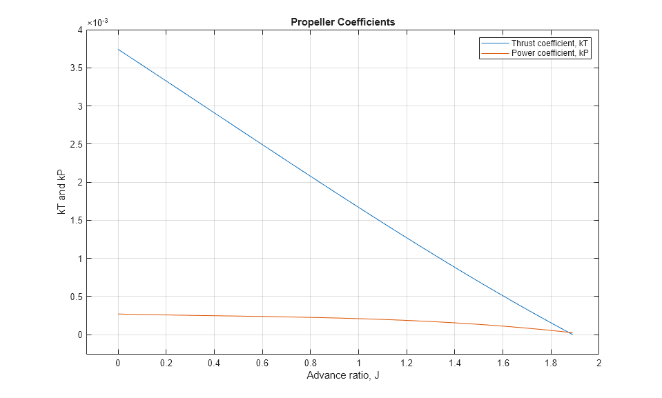 These plots show the main (Top) and tail (Bottom) rotor thrust and torque coefficients versus advance ratio defined in the block property inspector.