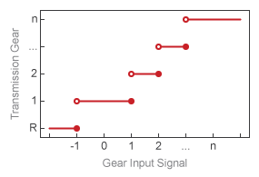 The input signal to the Gear port sets the transmission gear according to the expression: