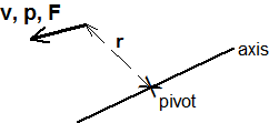 In general, mechanical systems mix rotational and translational motion. Rotational dynamics and motion about an axis couples to translational dynamics and motion (velocity v, momentum p, force F) at some distance (moment arm r) from the rotational pivot through a constraint that captures only motion normal to the moment arm.