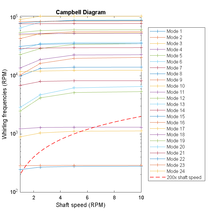 Click the button below to view the Campbell frequency analysis plot for the flexible shaft.