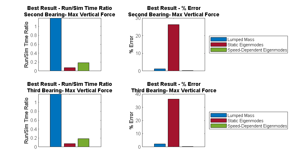 Getting rigid results Simulation 1 of 1 Execution time: 1: 2.7303 s Getting Lumped mass results Simulation 1 of 2. 5 flexible elements Execution time: 64.4796 s Simulation 2 of 2. 10 flexible elements Execution time: 118.738 s Getting Static eigenmodes results Simulation 1 of 4. 12 modes Execution time: 5.6403 s Simulation 2 of 4. 16 modes Execution time: 6.6616 s Simulation 3 of 4. 20 modes Execution time: 6.869 s Simulation 4 of 4. 24 modes Execution time: 7.1487 s Getting Speed-dependent eigenmodes results Simulation 1 of 4. 12 modes Execution time: 8.9816 s Simulation 2 of 4. 16 modes Execution time: 10.6754 s Simulation 3 of 4. 20 modes Execution time: 15.0944 s Simulation 4 of 4. 24 modes