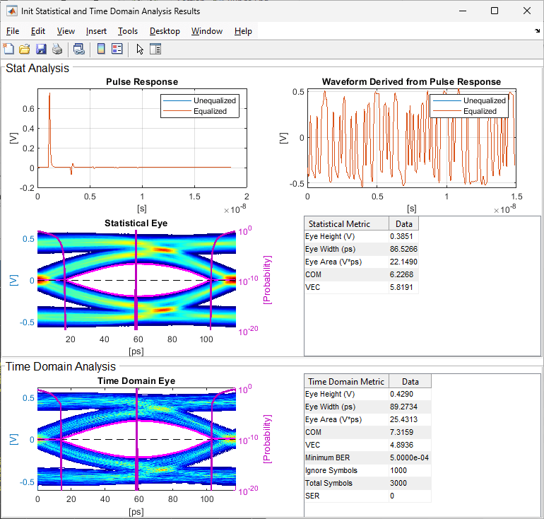 You can load the system model for the LPDDR5X data signal by typing the following command in the MATLAB® command window to open the SerDes Designer model lpddr5x_data.mat: