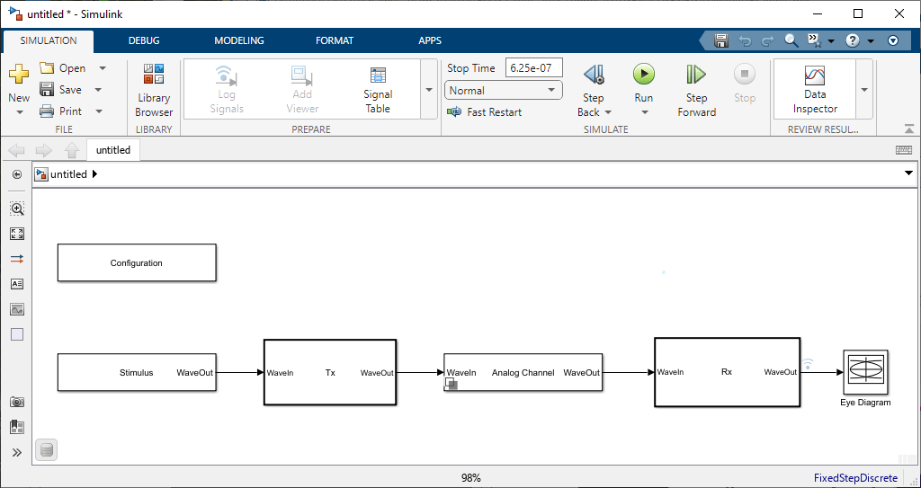 Click on the Export button in the toolstrip to export the above configuration to Simulink for further customization and generation of the IBIS-AMI model files.