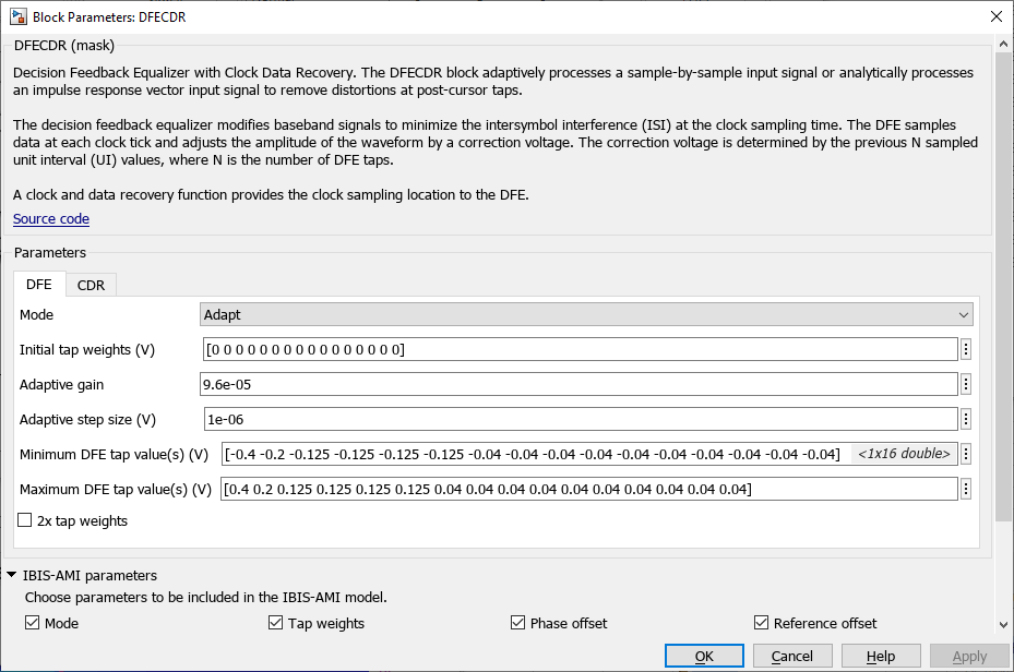 To test the new parameter, you will need to run simulations and see that the FFE taps are changing (in Init only at this point). Another option is to press Ctrl-D to compile the model but not run simulation. This will check for errors/warnings (note: there may be 1 warning).