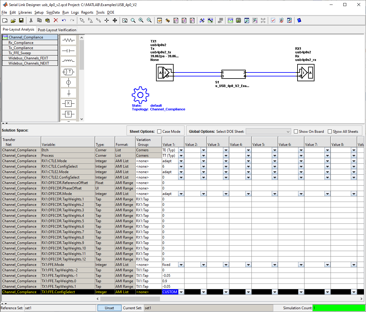 For more information about the USB 4.0 V2 channel compliance schematics, transfer net properties, and compliance rules, refer to the document USB_4p0_V2.pdf that is attached to this example as a supporting file.