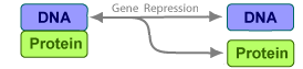 Gene Repression. Transcription of DNA to mRNA is regulated by the binding of the protein product from translation to the DNA. As more protein is produced, the DNA is bound with the protein more often and less time is available for transcription with the unbound DNA.