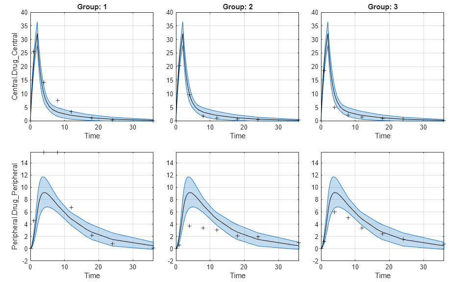 sbiotrellis(gData,'ID','Time',{'CentralConc','PeripheralConc'},'Marker','+',...