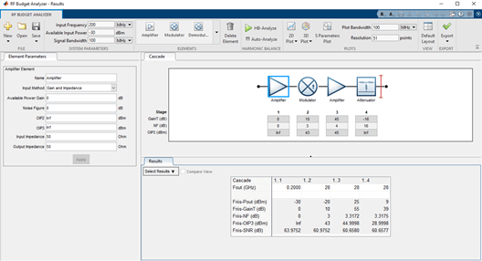 Type rfBudgetAnalyzer(rfb) command at the MATLAB® command line to visualiaze the RF system in the RF Budget Analyzer app.