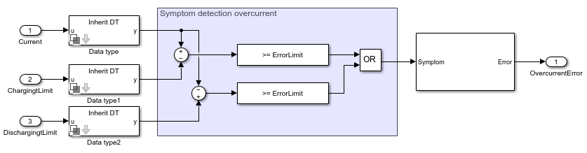 The Battery Current Monitoring block implements battery overcurrent monitoring. Overcurrent protection is necessary in electrical circuits. A battery that is exposed to overcurrent experiences a considerable increase in cell temperature and is in a dangerously unstable state.