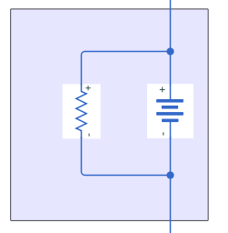 The Battery Equivalent Circuit calculates the terminal voltage of the battery at every time step by solving the Kirchhoff's voltage law