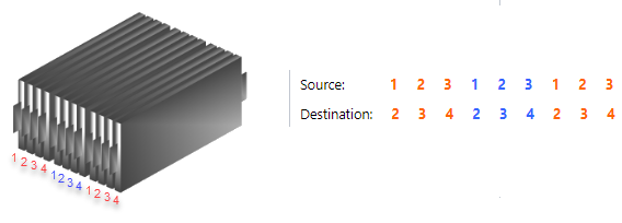 The cell numbering convention for the mapping is related to the Layout property of each individual parallel assembly.