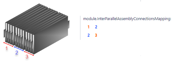 module = Module(... ParallelAssembly=ParallelAssembly(), ... NumSeriesAssemblies=4, ... StackingAxis="Y",... InterParallelAssemblyGap=simscape.Value(0.05,"m"));
