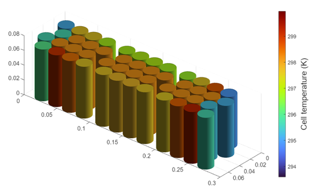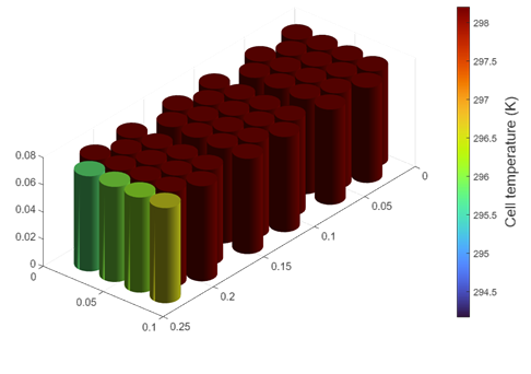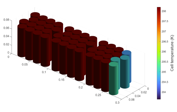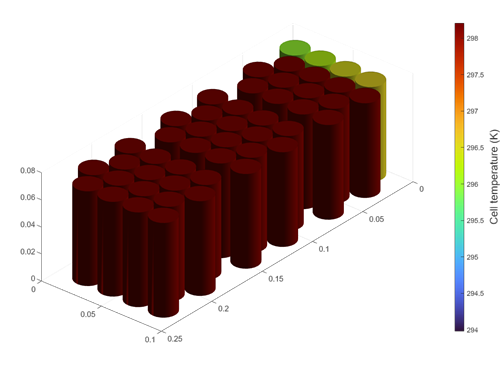For example, you can place cells on an aluminium cooling plate to enhance heat removal and, at the same time, join them together mechanically with a potting compound that effectively eliminates or decreases the inter-cell heat exchange path. The cell temperature has a direct impact on battery performance and lifetime. Therefore, it is crucial to predict this state in dynamic simulation.
