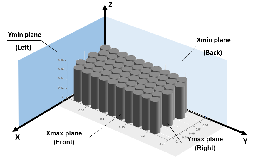 Thermal boundary conditions define the specific heat transfer mechanisms that occur at each interface of a cell thermal model and its surroundings. In battery systems, cells are typically thermally coupled to different heat sources and sinks, all of which have an effect on the battery cell temperature. The number and type of thermal boundary conditions for a cell model depends on the thermal and mechanical design of the battery system.