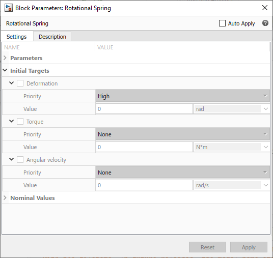 the resulting Initial Targets section of the block dialog box looks like this: