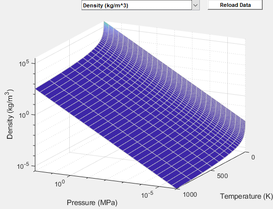 The block provides the option to plot the specified gas properties as a function of temperature and pressure. Plotting the properties lets you visualize the data before simulating the model.